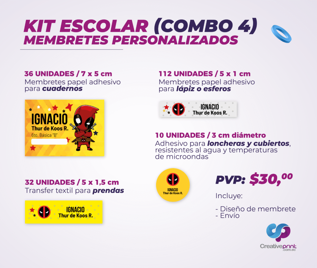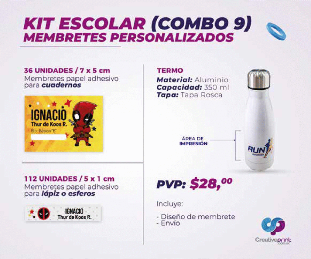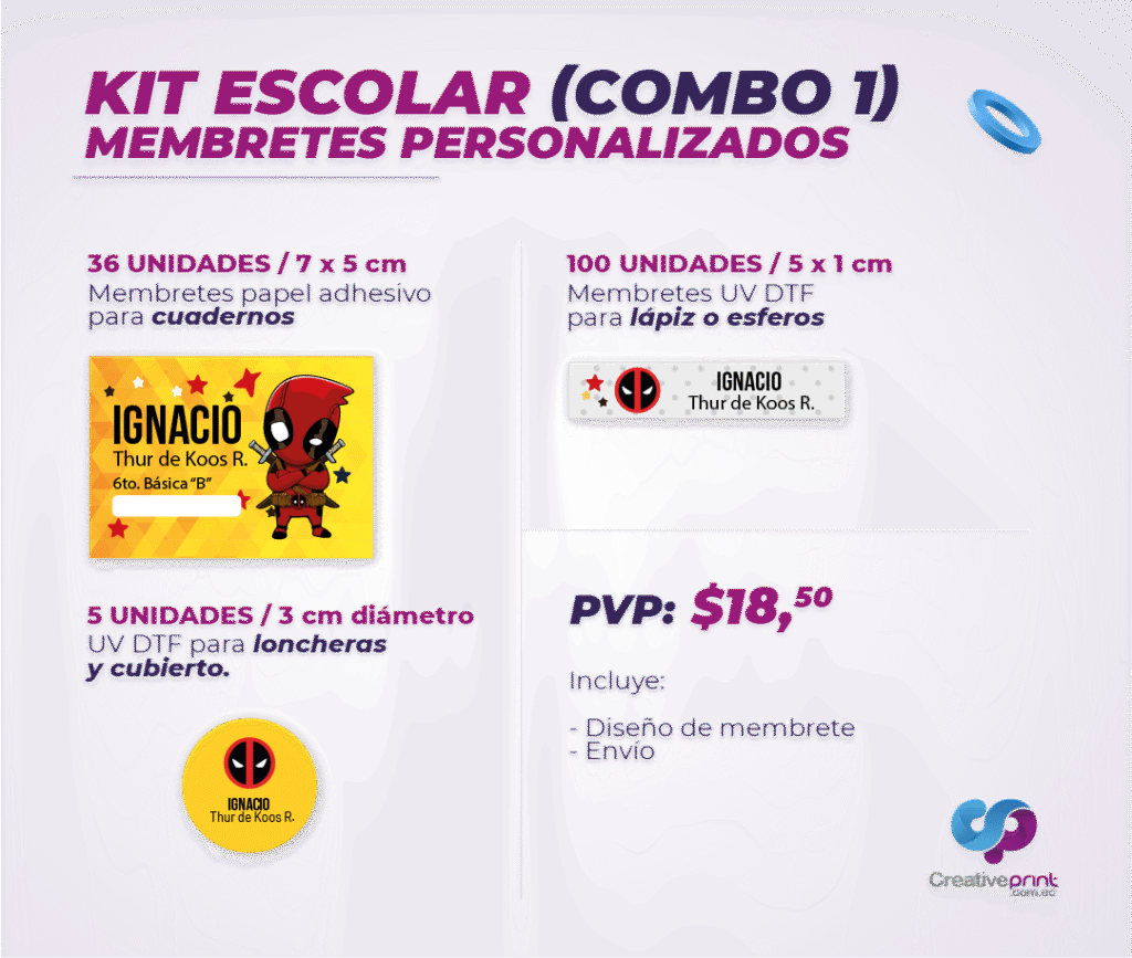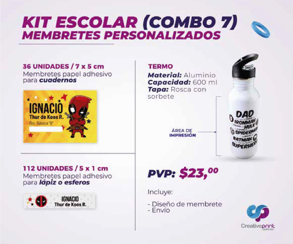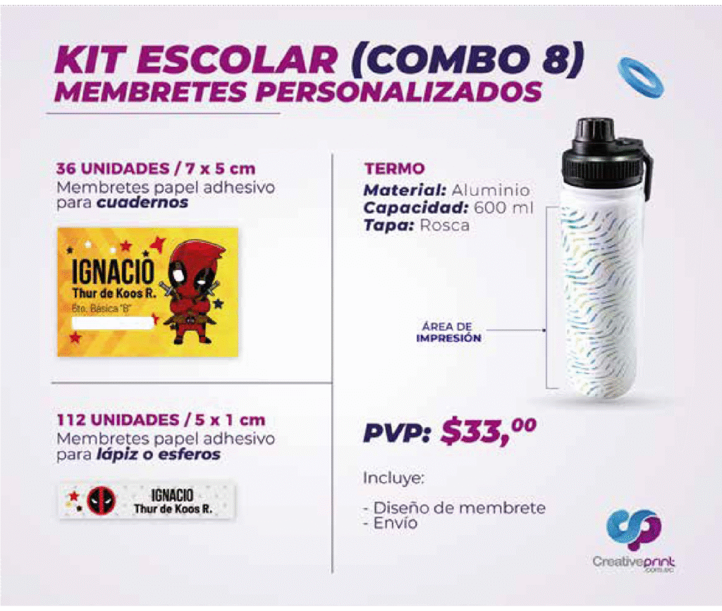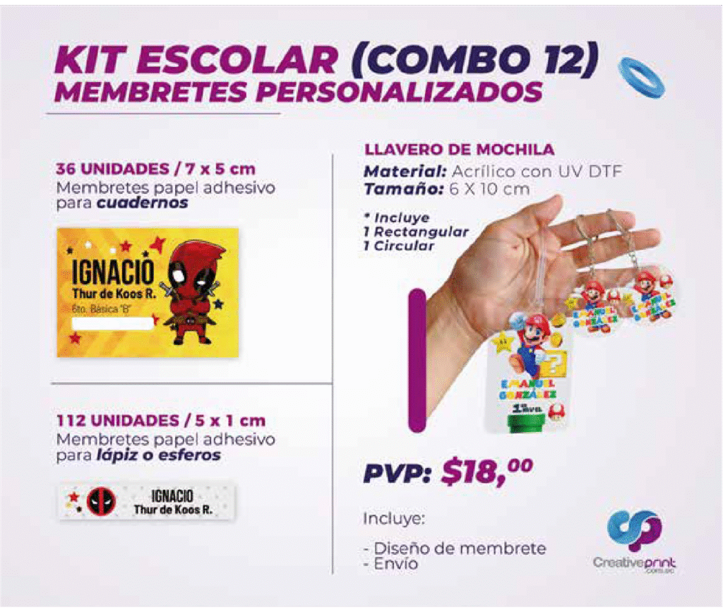 Con nuestros kits de productos escolares encontrarás todo lo necesario para comenzar el nuevo ciclo con organización y creatividad. Trabajamos con materiales de alta calidad y tecnología de impresión profesional para que cada producto sea duradero, funcional y visualmente atractivo.